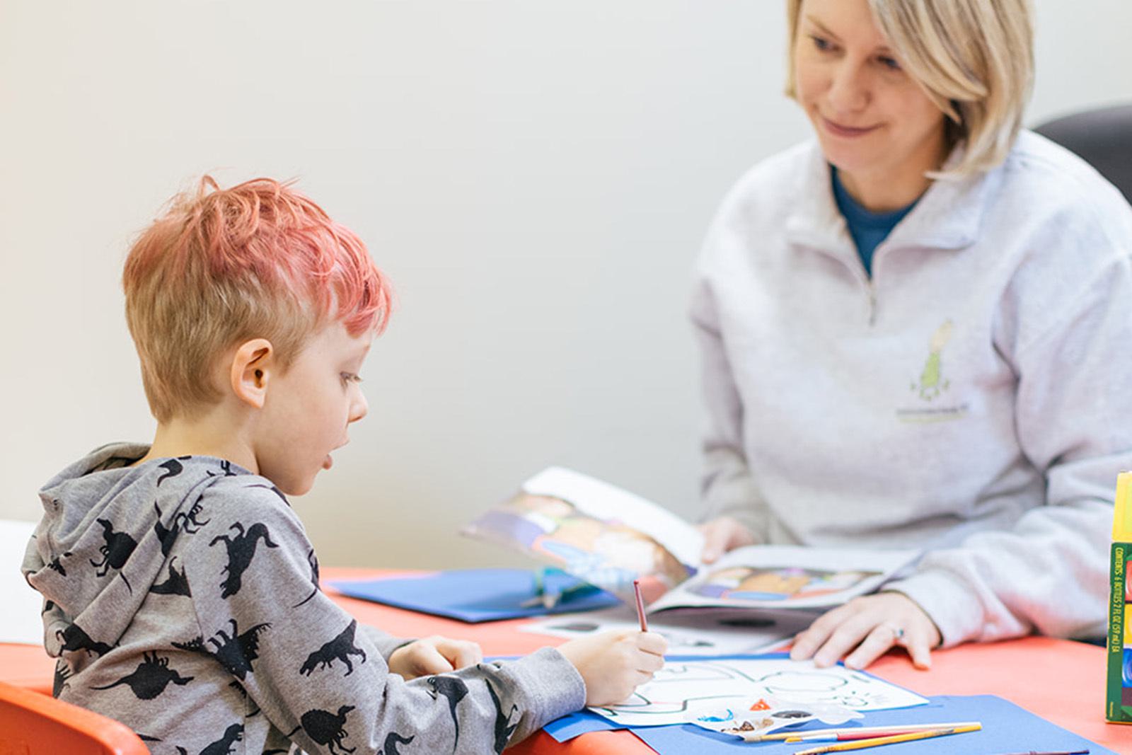 Speech Therapists interact through talking, playing, and using books, pictures, and everyday objects to help stimulate language development. They also model sounds and syllables and provide strategies for the parent and child to improve speech and language at home.